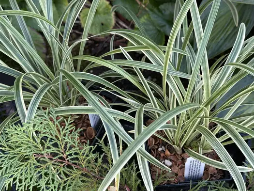 Ophiopogon jaburan 'Vittatus' is a broadleaf evergreen perennial groundcover bulb / corm / tuber or grass (or grassy in appearance) with green, variegated and white foliage. In summer blue, lavender, purple and white flowers emerge followed by blue fruit. Features grassy texture. Attracts bees making it an excellent addition to pollinator gardens. Grows well with sun - mostly shade and regular - occasional water. Drought tolerant once established. Adapts to various soil conditions. Does well in average, clay, gritty, rich and well-drained soil. A good option if you're seeking something heat tolerant, humidity tolerant and verticillium wilt resistant.