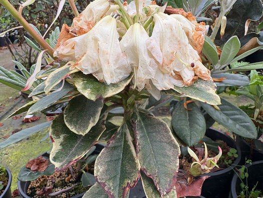 Rhododendron 'Variegated Unique' is a broadleaf evergreen shrub with variegated foliage. In spring cream and pink flowers emerge. Grows well with mostly sun - mostly shade and even moisture water. Does well in acidic, rich and well-drained soil.