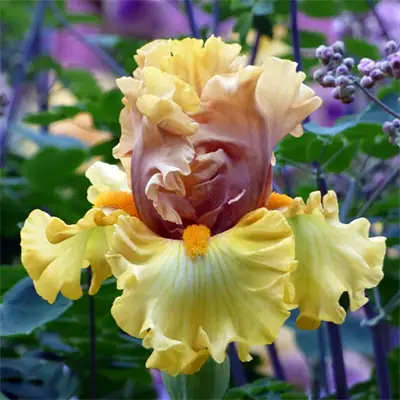 'Brass Lamp' is a most unique bearded iris with brassy burgundy brown standards grading towards yellowish tan at the tips and ruffled yellow falls accented with green and marked with bright orange beards. Blooms in the early to mid season at 35 inches high. Tall Bearded (TB) irises, previously known as Iris germanica, have greyish strap-like, pointed leaves from fleshy rhizomes and tall stems of gorgeous, often fragrant, flowers that come in every colour of the rainbow. Divide every two to three years (or when clumps become congested and flowering decreases) just after blooming. Trim the foliage back to a third and plant the rhizomes at or just below soil level. Deer and rabbit resistant.
